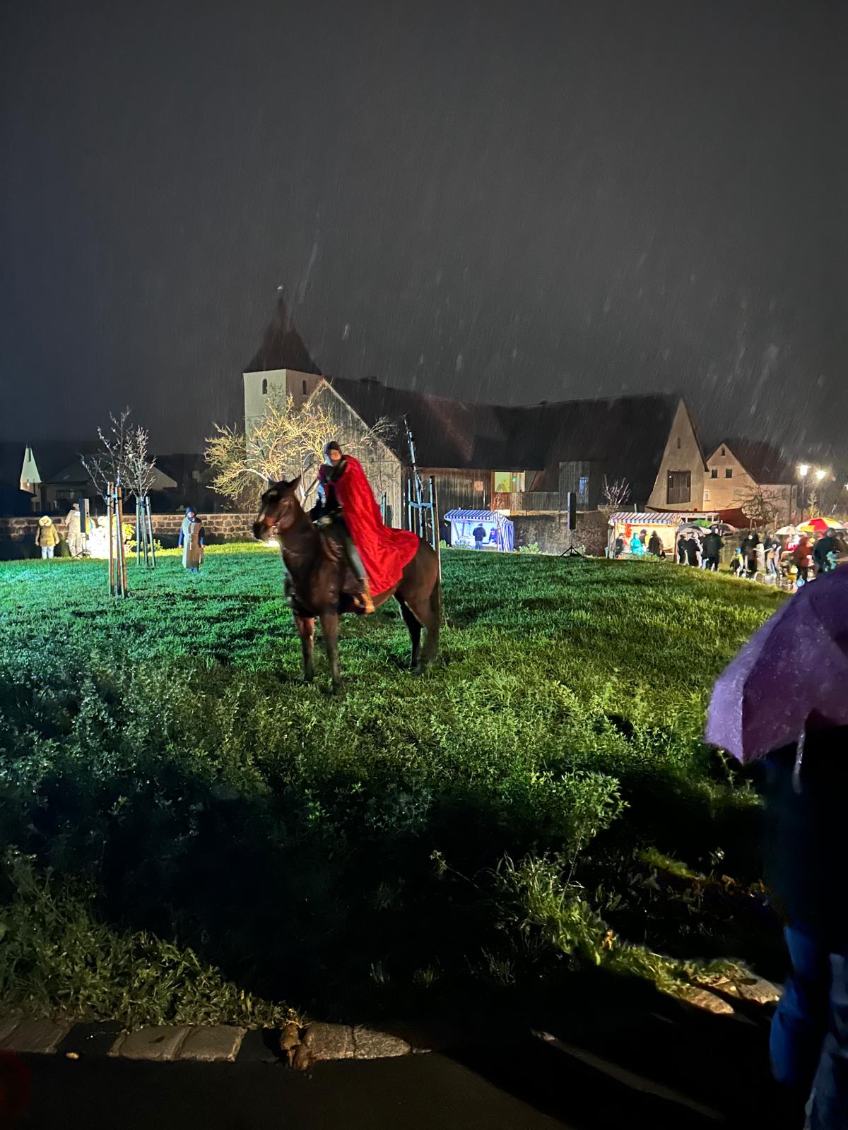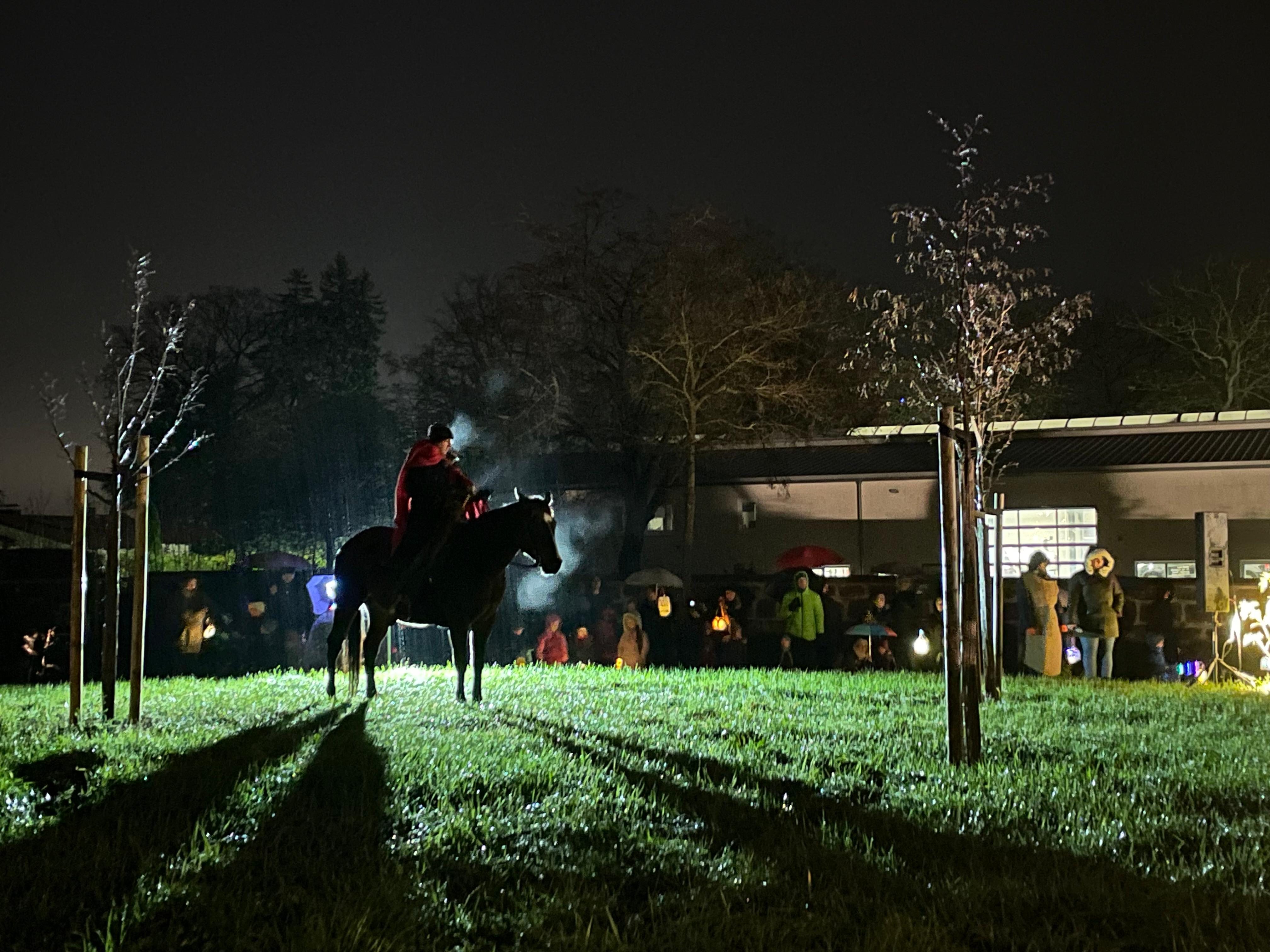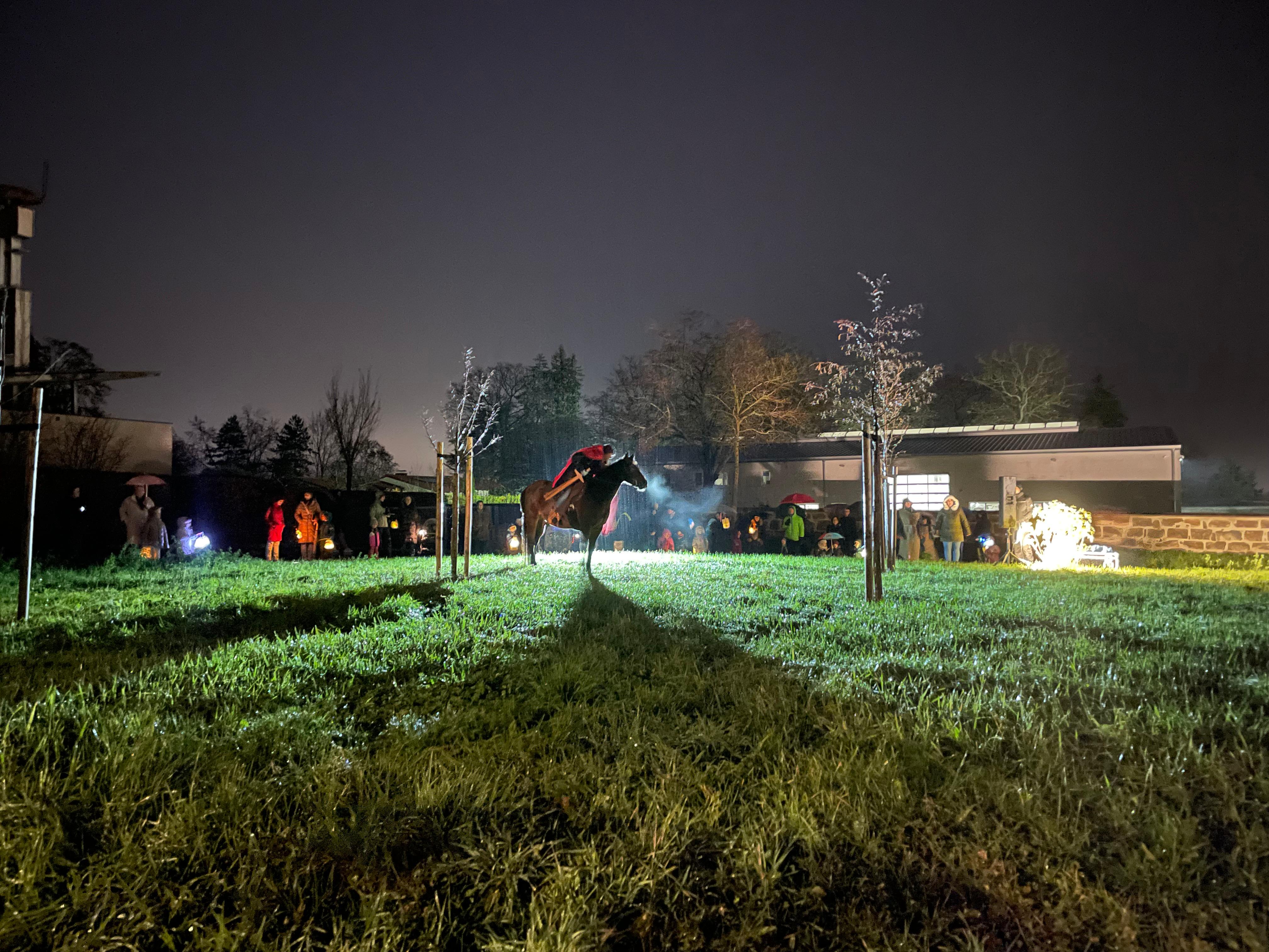 Am 17.11.2025 fand unser jährlicher Laternenumzug statt – ein stimmungsvolles und leuchtendes Highlight in dieser grauen Zeit. Gemeinsam mit Eltern, Großeltern, Geschwistern und ErzieherInnen zogen die Kinder mit ihren liebevoll gebastelten Laternen durch die Straßen von Obermichelbach. Begleitet von Liedern und dem ersten Schnee trafen sich alle im Ortskern, um dort die Geschichte von St. Martin hautnah mitzuerleben. Martin und sein Pferd brachten die Legende zum Leben und zauberten vielen Kindern großes Staunen in ihre Gesichter. Zum Abschluss konnte sich noch bei Punsch und Getränken aufgewärmt oder mit kleinen Leckereien gestärkt werden.